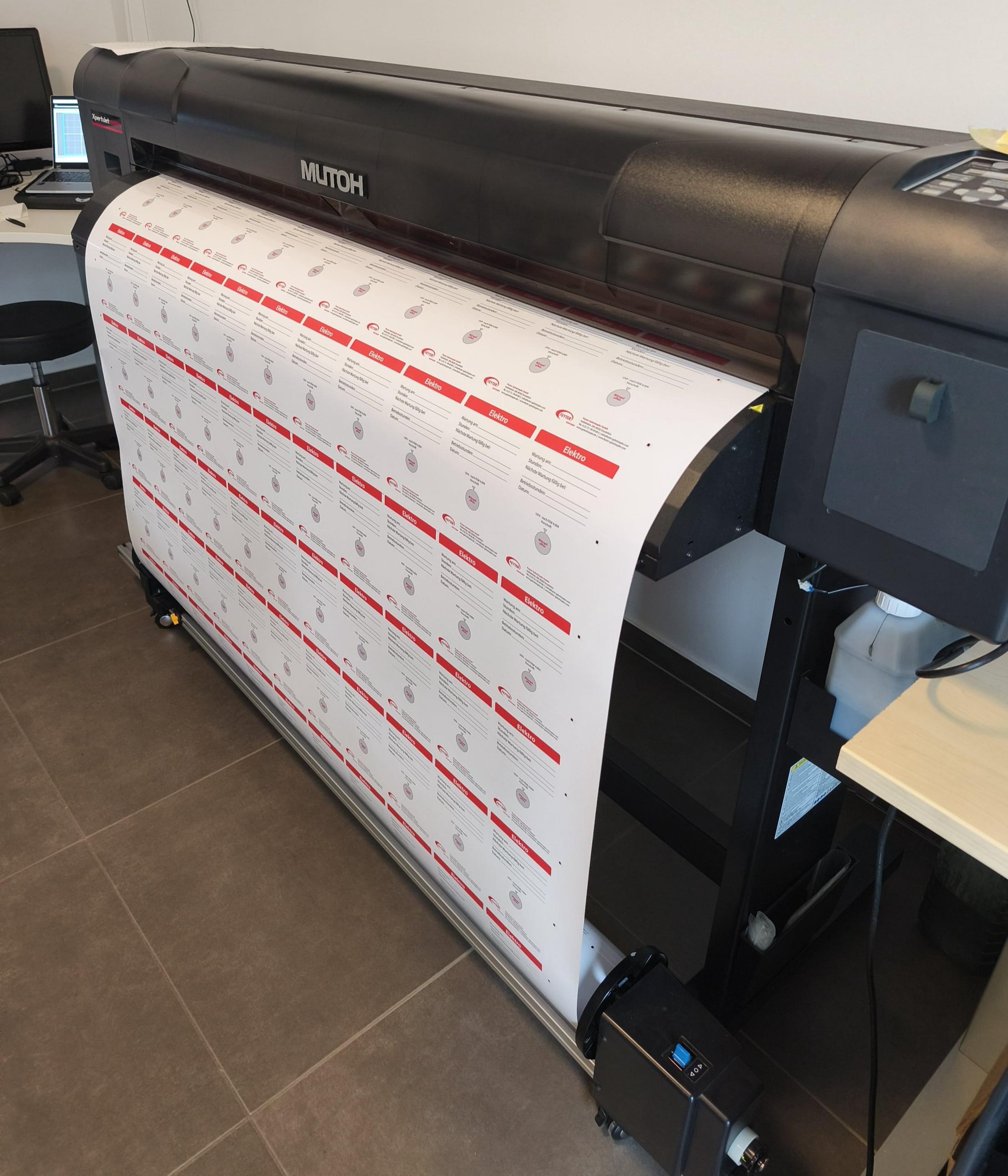 Hochauflösende Aufkleber, Etiketten, Fenstergrafiken sowie eventuell Fahrzeug- und Objektbeklebungen.